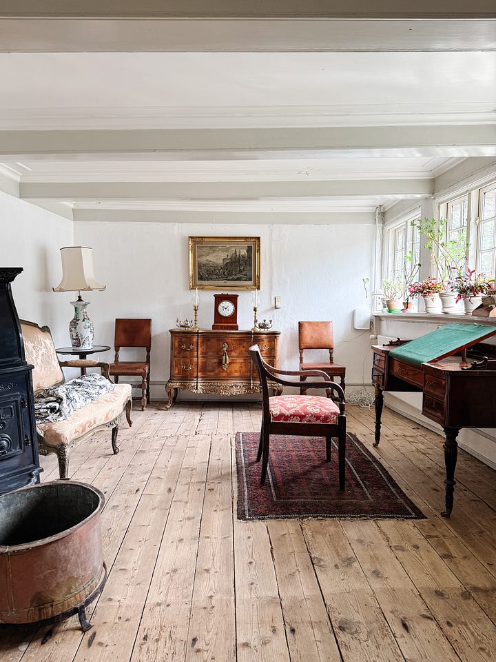 As I child when asked what I wanted to be when I grew up I always answered “a farmer’s wife”, well it came second after being Snow White but as I grew older I realized that that was not going to happen. I didn’t fall in love with a farmer so plans were changed and I spent my mid twenties up to my late forties in Georgian houses with high ceilings and large rooms with lots of windows and ornamental frills. Secretly I kept longing for wide green views, low ceilings, beams and wood burning stoves to brew a bit of stew on. I’ve been pinning images of farm life for many years on Pinterest dreaming of owning chickens and sheep. And now at almost 51 I have become the owner of a farmhouse! In a historical town in the rolling hills of southern Funen in Denmark.