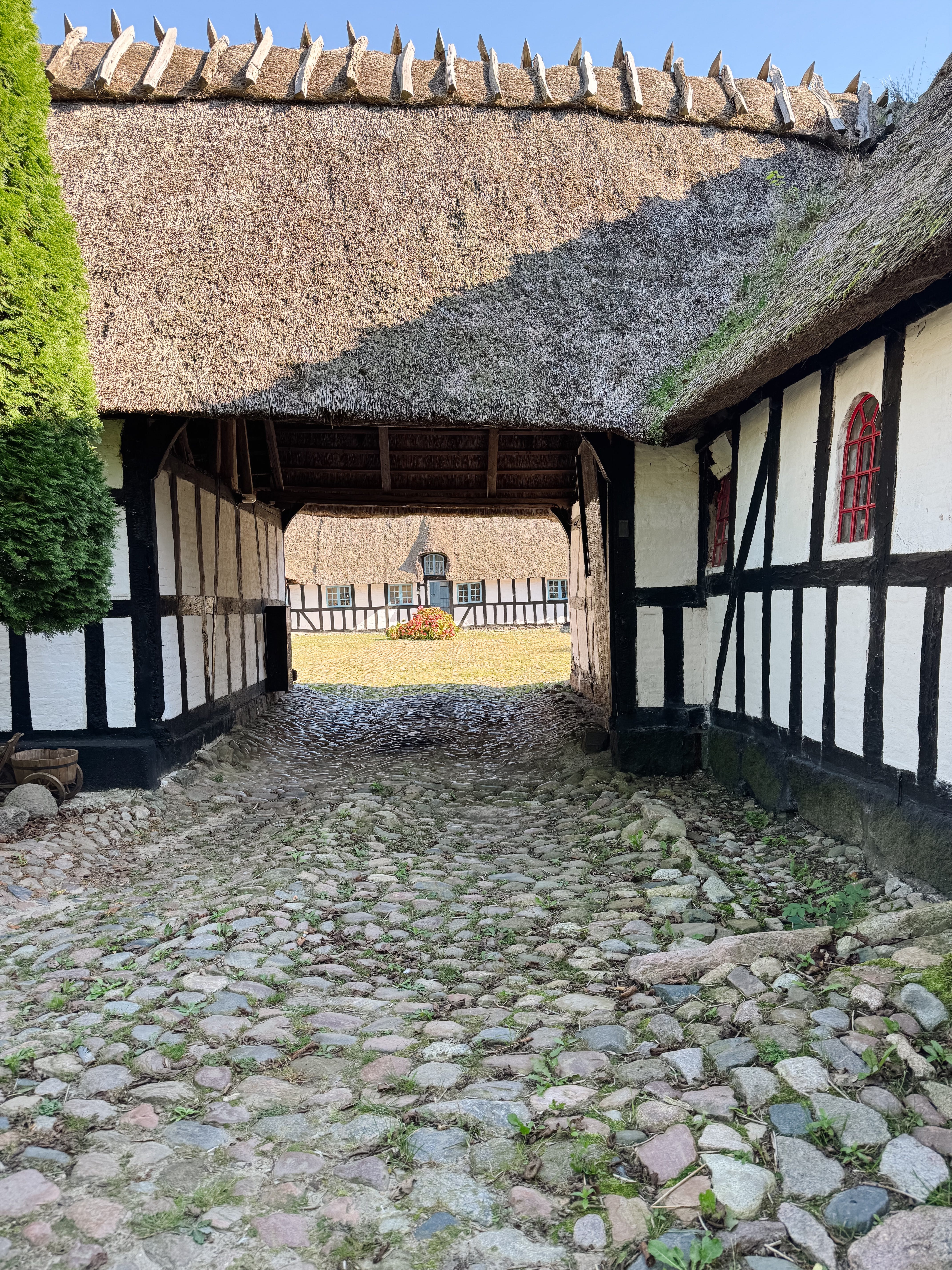 Damgård is the name of our new farmstead which means “pond farm” but there’s no pond in sight. It’s a typical square Danish farmstead from 1827 and it consists two barns and 3 cottages. We are going to live in the middle cottage and use the other two cottages for holiday rentals. Eventually the two barns will be used for a wedding/party venue, shop, gallery and painting studio for Boris. We will be renovating and decorating for the rest of our lives and that was something we were looking for as we have to stop moving house. This will probably be our forever home and our forever place of work.